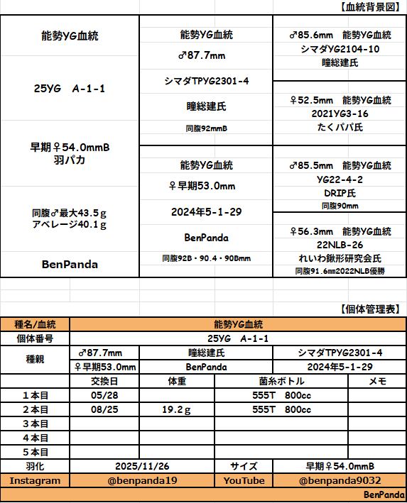 ♀54.0B㎜ 2025年11月26日羽化 後食済み未使用