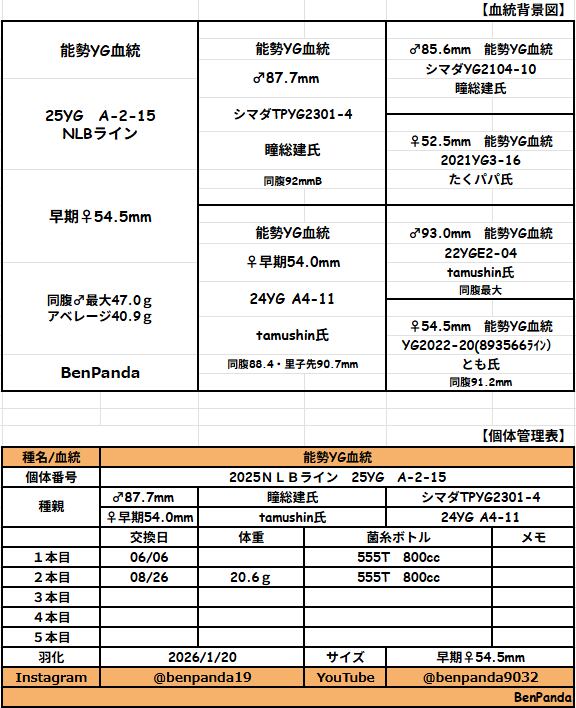 血統背景、幼虫データーはブログにて記載しております。