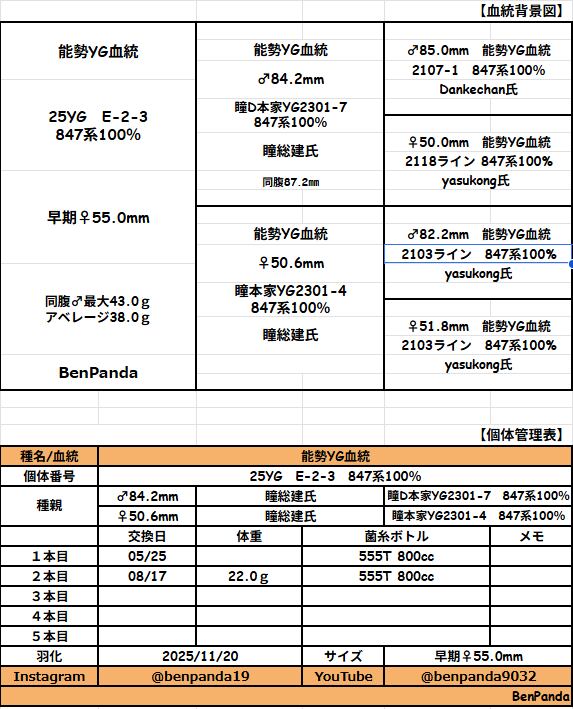 血統背景、幼虫データーはブログにて記載しております。
